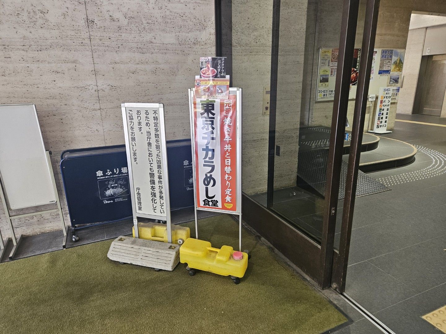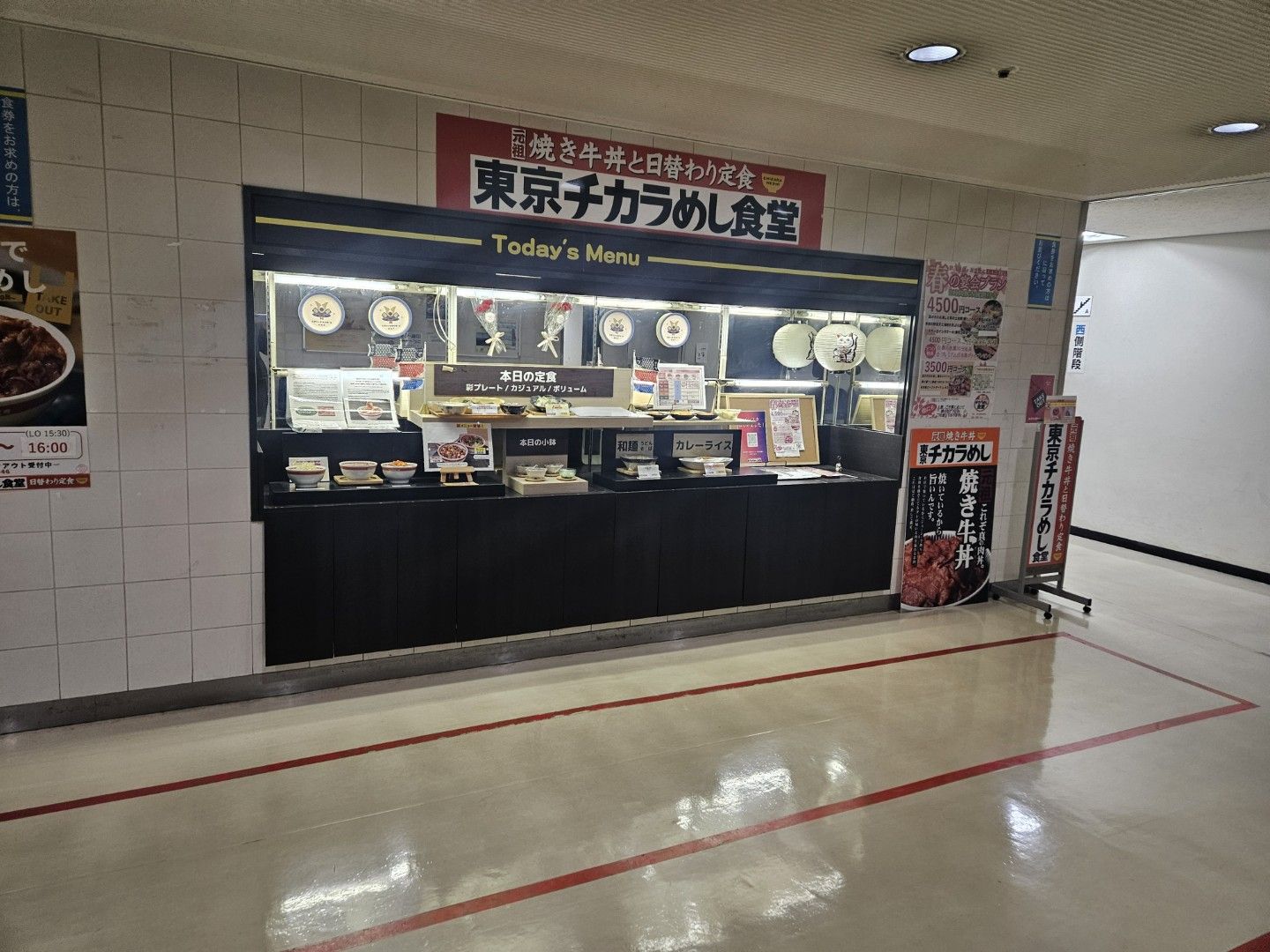 どうやら地下の食堂が丸ごとチカラめし運営になっているようで、焼き牛丼の他にも日替わりの定食やカレーライス、麺類といった一般メニューも並んでいました。