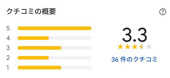 そしてGoogleマップの星評価はまさに賛否両論です。