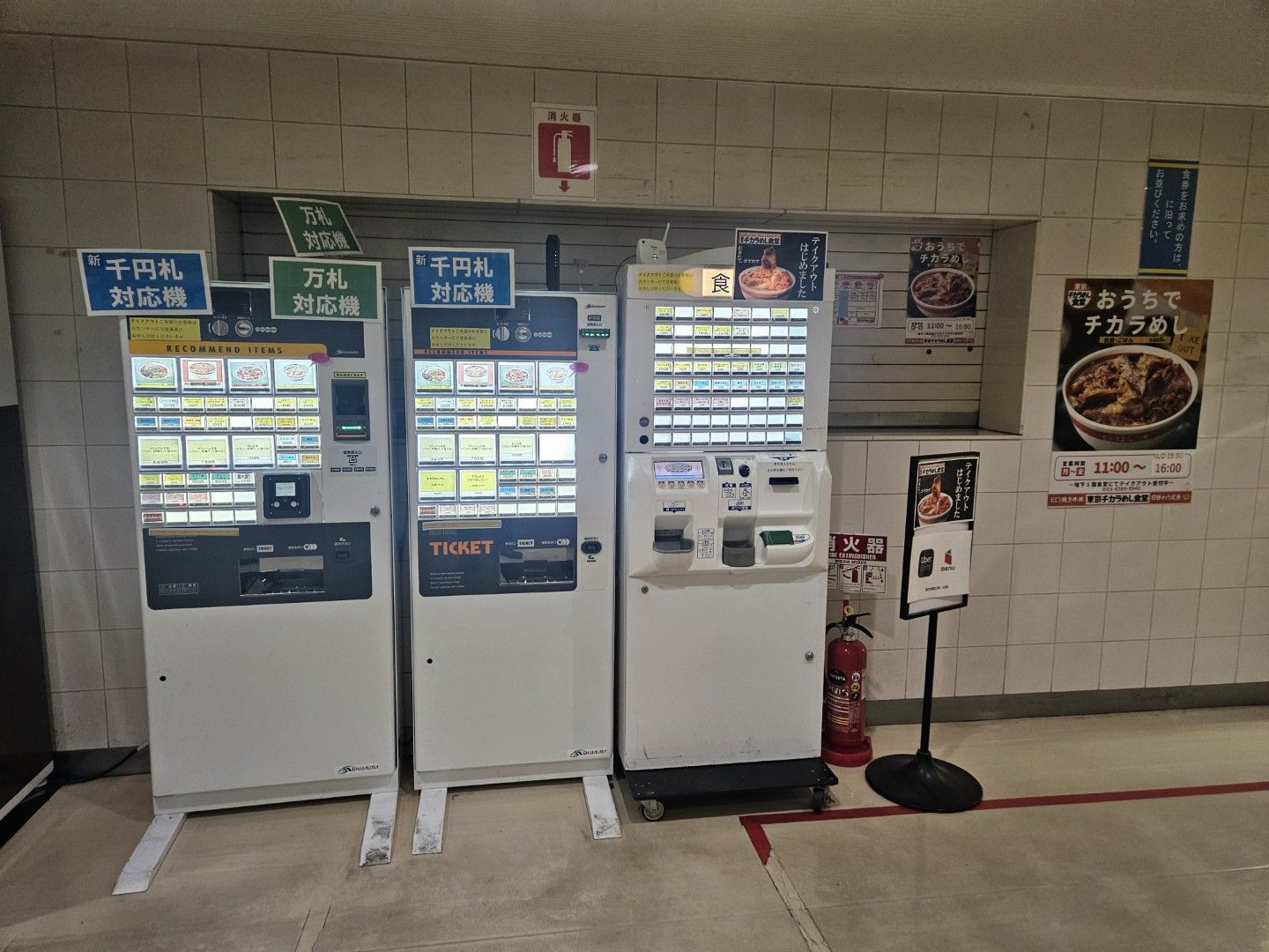 ピークタイムは牛丼・定食など種類ごとに列が形成されるようですが、私が行った時間帯は利用者も少なかったので1箇所でまとめて対応されてました。