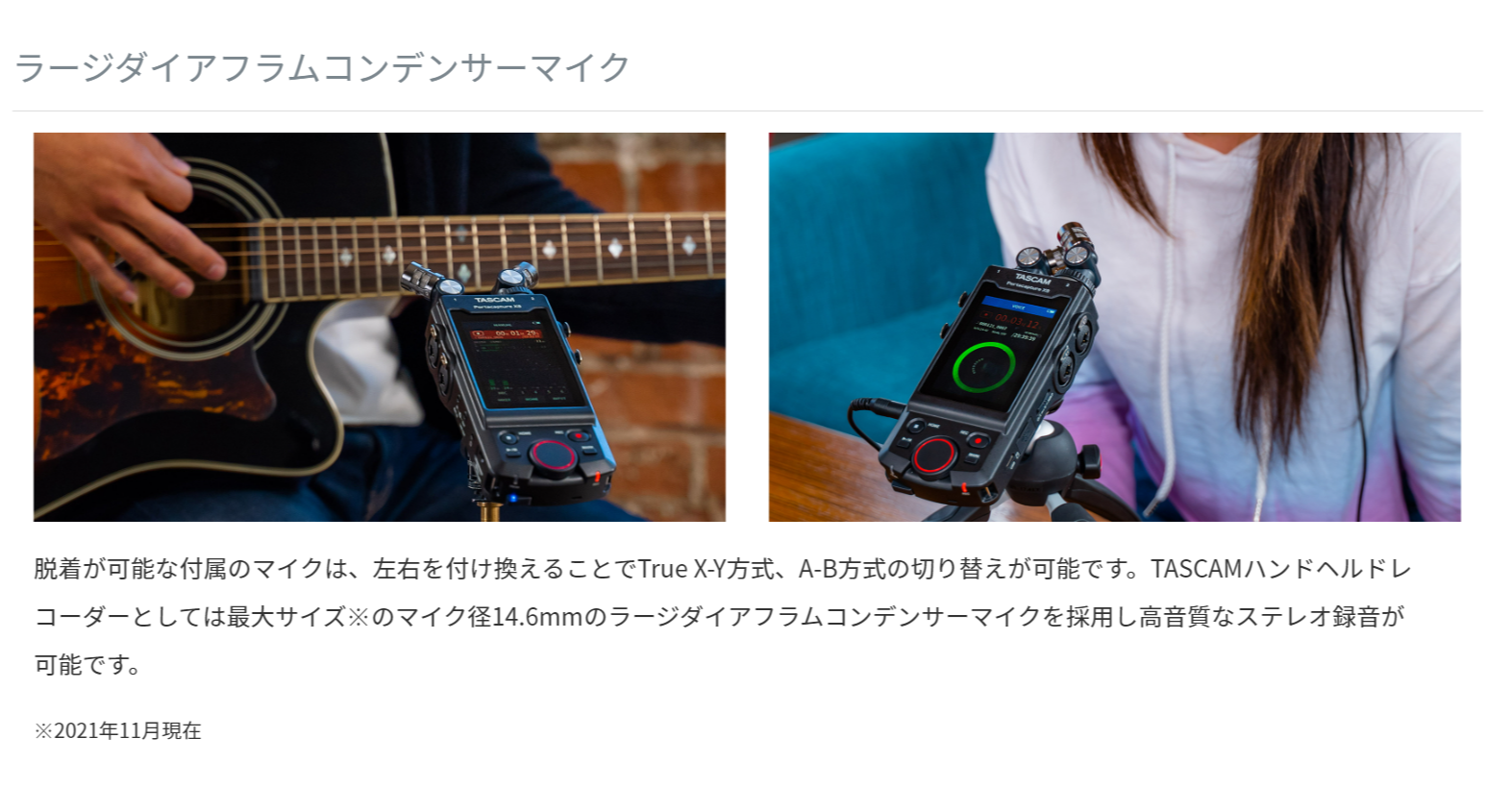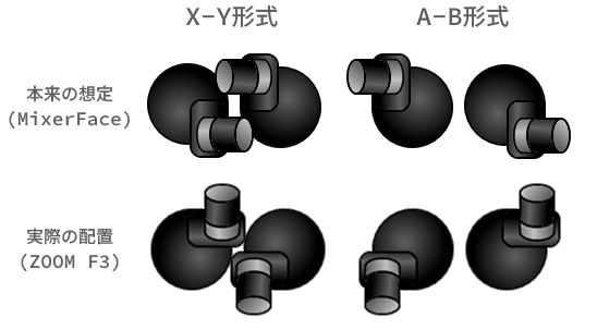- ちなみに後述のTASCAM Portacapture X8の付属マイクはTrue X-Y方式、A-B方式対応と記載されており、恐らく狭義のX-Y方式と広義のA-B方式みたいなニュアンスがあると思われる