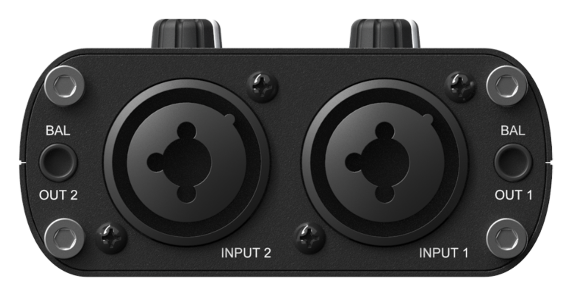 改めて純正であるiRig Pro Quattroの画像を見ると、XLRコンボジャック間の距離がそこそこ空いていました。
