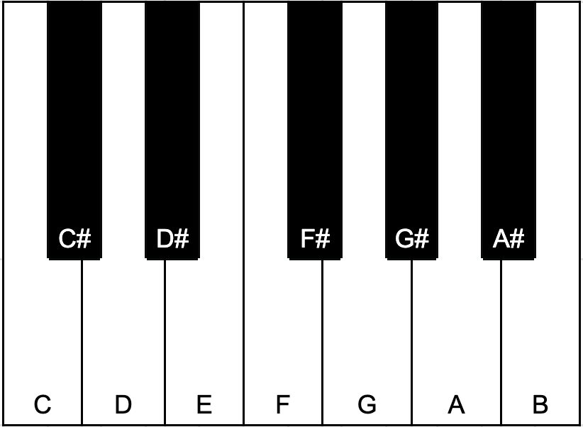 ピアノの鍵盤は白鍵と黒鍵から構成されており、平均律Cのメジャーダイアトニックスケール(ドレミファソラシド)を白鍵で横一列に並べて、そこに入らなかった音を黒鍵として白鍵奥側一段上に配置したというのが大雑把な定義になるでしょうか。