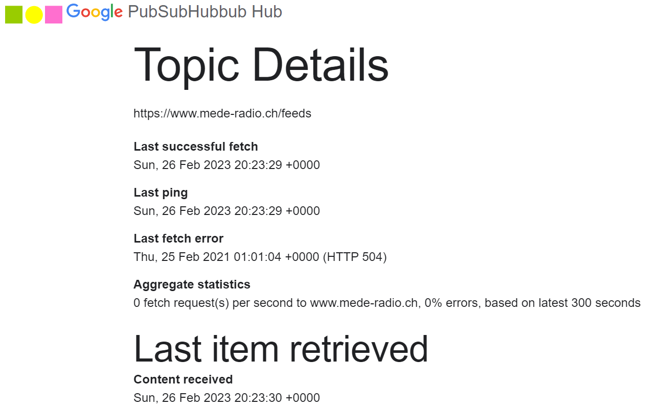 curl -X POST -d 'hub.mode=publish' -d 'hub.url=https://www.mede-radio.ch/feeds' -H 'Content-Type: application/x-www-form-urlencoded' https://pubsubhubbub.appspot.com/ -s