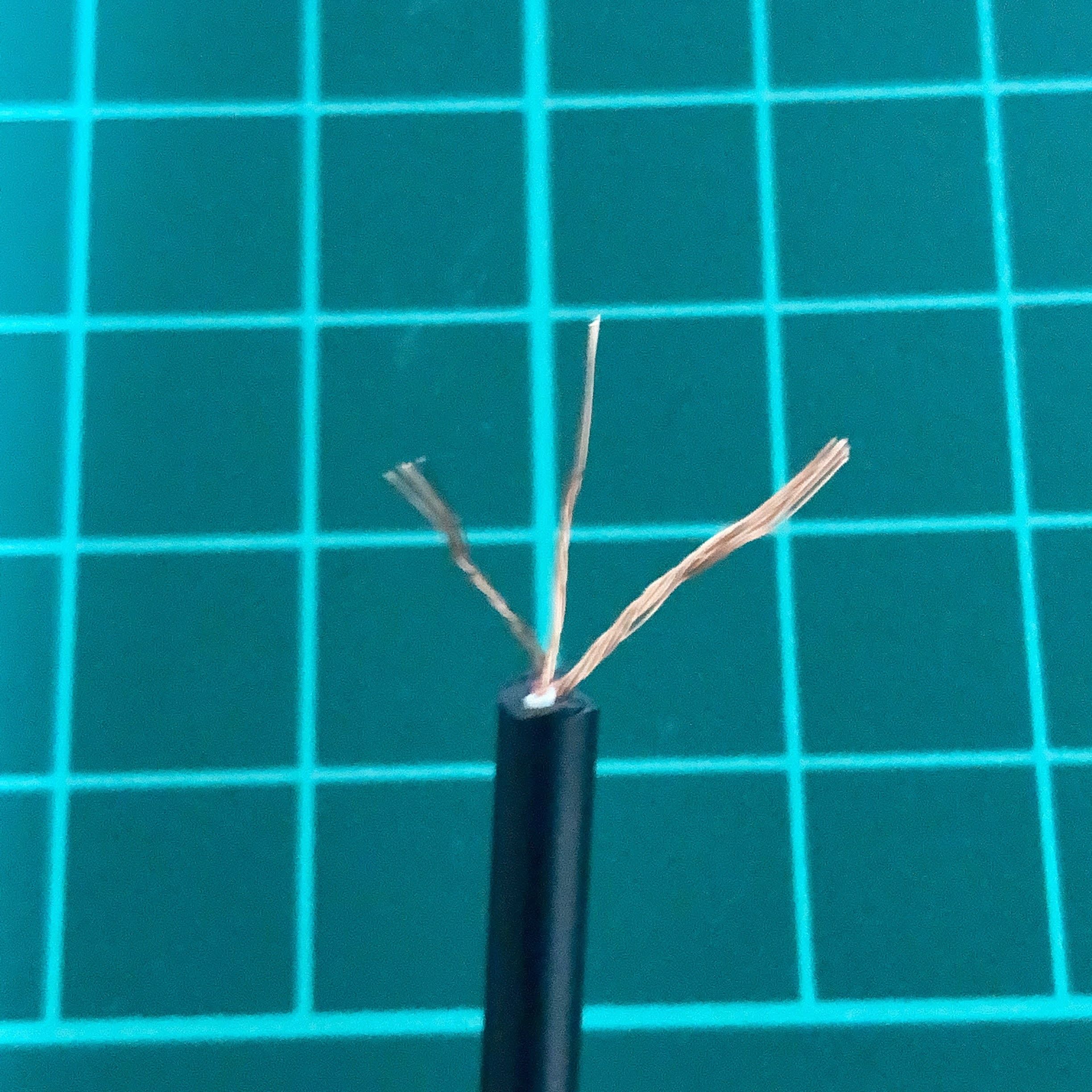 写真では非常に分かりづらいですが、このケーブルでは赤が左側(上記回路図の2)、白が右側(上記回路図の4)でした。
