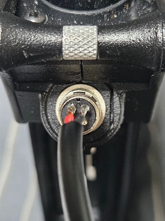 一応ケーブルの抜け止め用のイモネジが付いていますが、今回用意したUSBケーブルだと細すぎて意味がなさそうだったので絶縁テープを巻いて補強した上で留めました。