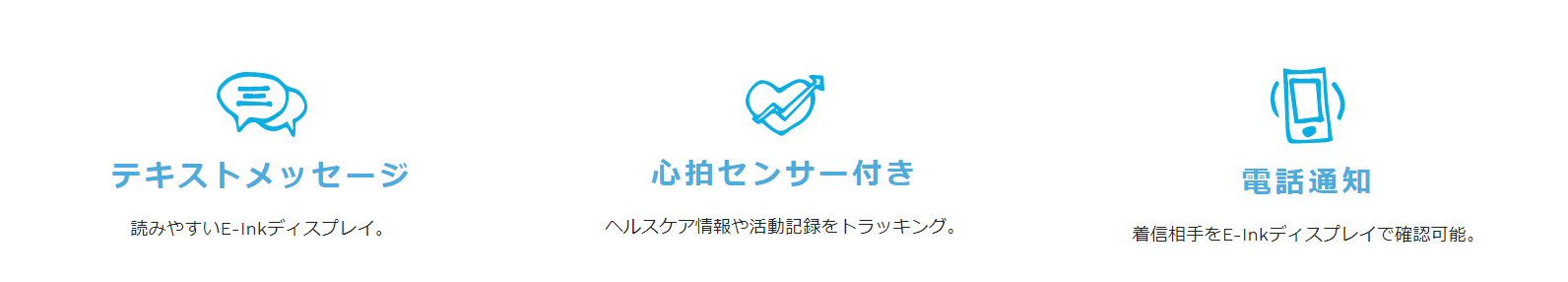また、タッチスクリーンではないものの最低限の通知受信、天気表示、ストップウォッチ、スマホの音楽コントロール等の機能も持っています。