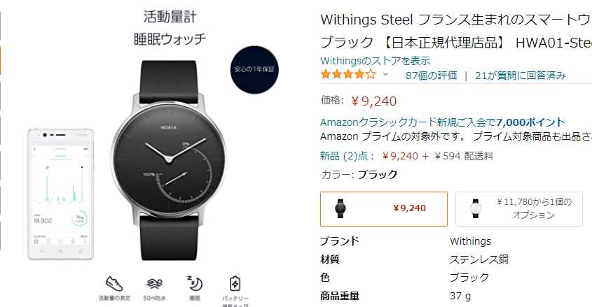 前回買った直後にNokiaのヘルスケア部門がWithing社に買収されたらしく、その後機能は同じでロゴだけ更新されたものが販売されていました。